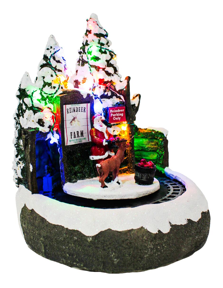 La magia de la Navidad en una pieza. Esta villa navideña con Santa Claus, reno y tren cuenta con luz para crear una atmósfera festiva. Con sus medidas de 18x18x21.5cm y el uso de pilas AA (no incluidas), es ideal para un hogar que busca un toque de magia.
