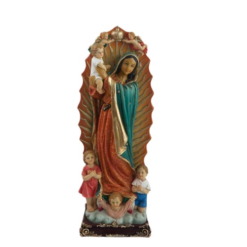 Virgen de Guadalupe de polyresina con niños de 13.97×9.65×39.62cm